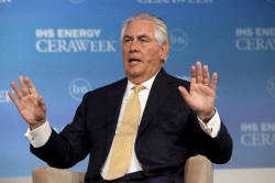 ExxonMobil Chairman and CEO Rex Tillerson speaks during the IHS