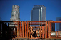 A construction worker on a building site in downtown Los