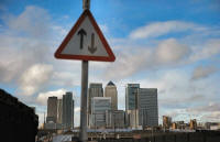The Canary Wharf financial district is seen in east London