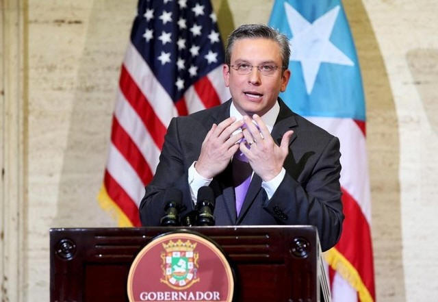 Puerto Rico's Governor Alejandro Garcia Padilla addresses the