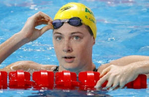 Australia's Cate Campbell reacts after the women's 100m freestyle