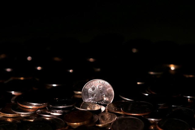 Russian rouble coins are seen in this picture illustration taken