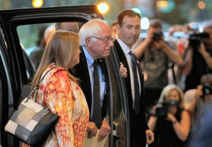 O'Meara Sanders arrive for a meeting with Democratic U.S. presidential