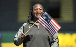 Gwen Berry, returning from a three-month suspension for using a