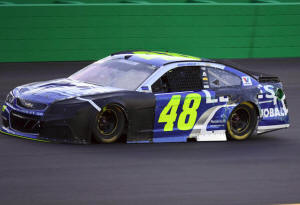 Sprint Cup Series driver Jimmie Johnson (48) drives after receiving