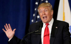 Presumptive Republican presidential nominee Donald Trump delivers a
