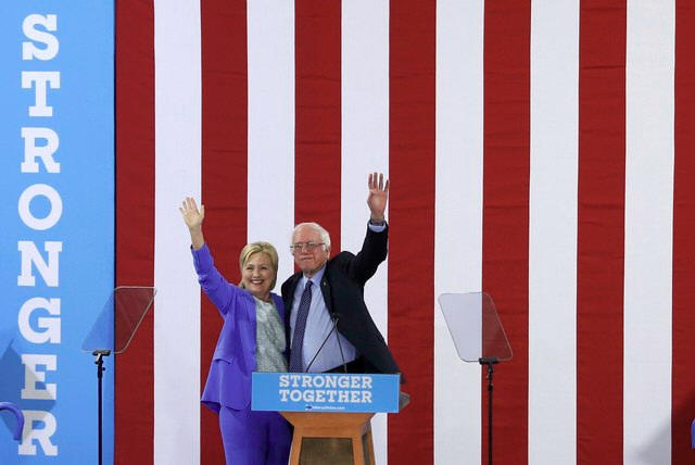 With Clinton nodding in agreement beside him, Sanders put aside their