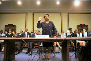 Attorney General Loretta Lynch is sworn in prior to testifying