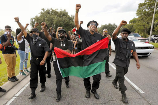wearing the insignia of the New Black Panthers Party protest