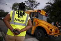 Safe Passage worker stands at an intersection near Sherwood