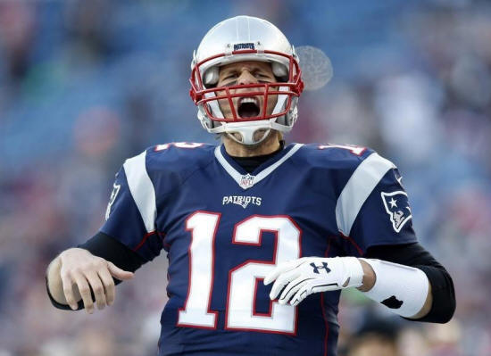 England Patriots quarterback Tom Brady (12) reacts