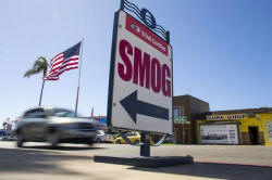 Cars drive past a California emissions testing site in Oceanside,