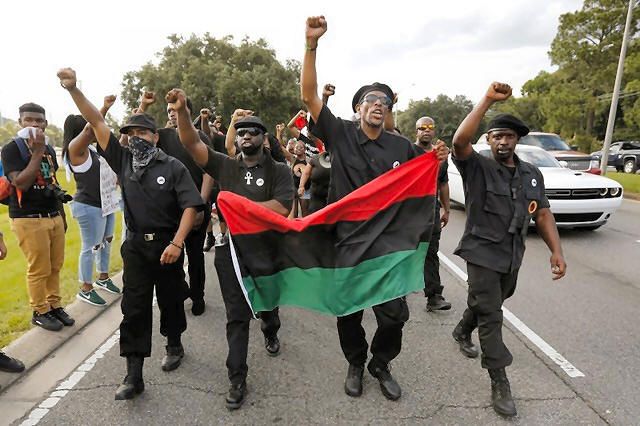 Demonstrators wearing the insignia of the New Black Panthers Party