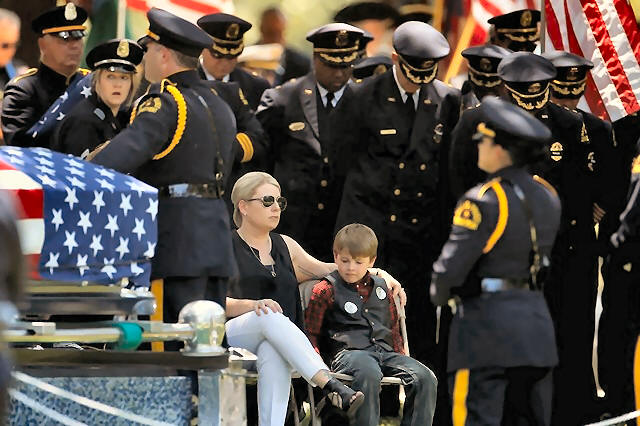 thousands crowded into the funeral for Dallas Area Rapid Transit officer