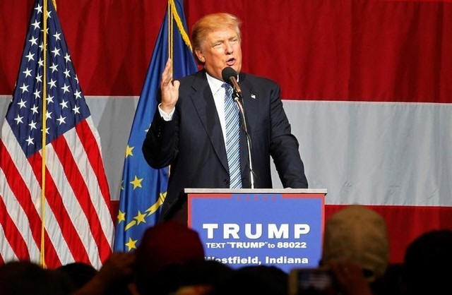 Republican U.S. presidential candidate Donald Trump addresses the