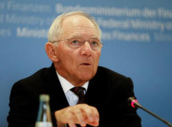 German Finance Minister Wolfgang Schaeuble addresses a news