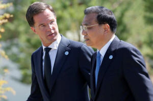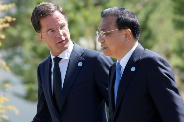 Dutch Prime Minister Mark Rutte chats with Chinese Premier Li