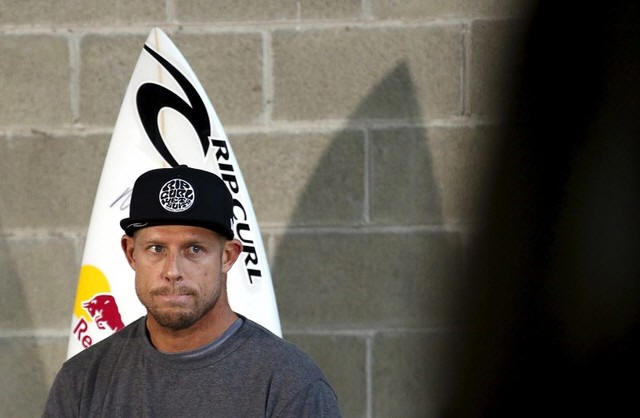 Mick Fanning of Australia, who survived a shark attack, reacts