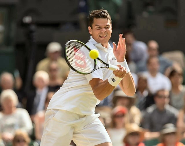 Milos Raonic (CAN) in action during his match against Andy Murray