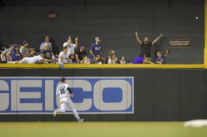 Fans cheer as Arizona Diamondbacks left fielder Chris Herrmann (10)