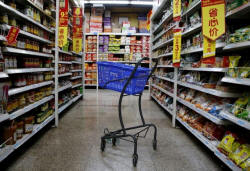 An empty shopping cart is seen at a branch store of Wal-Mart in