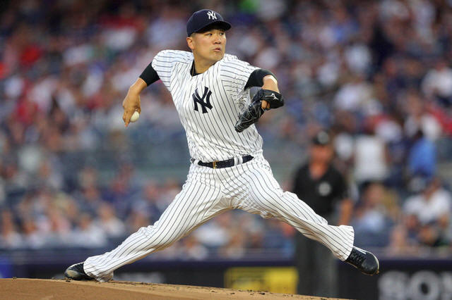 Yankees starting pitcher Masahiro Tanaka (19) pitches against the