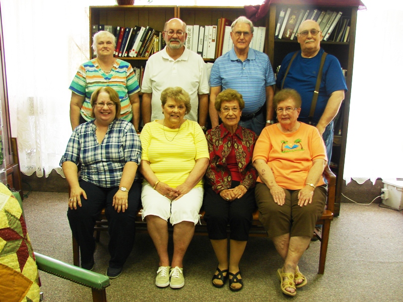 The Logan County Genealogical & Historical Society Executive Board recently elected officers for the fiscal year 2016-17. The board members and officers, front row (L to R): Brenda Jones, Vice-President Carol Farmer; Corresponding Secretary Mary Ellen Martin and Secretary JoAnne Marlin. Back Row: President Diane Osborn, Treasurer Bill Donath, Paul Buckles and Bill Detmers.