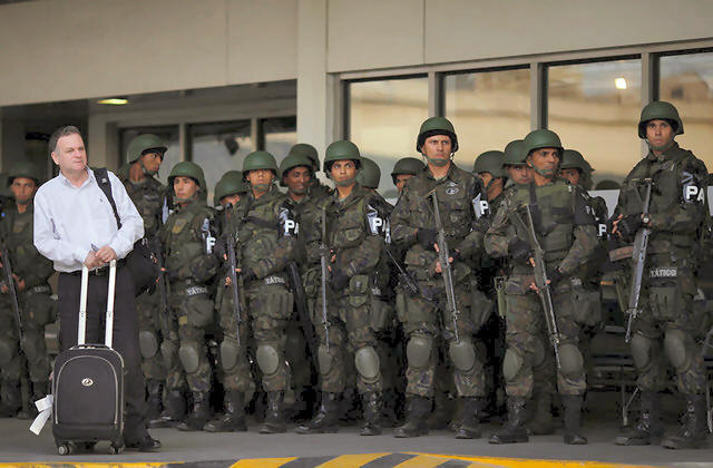 roadblocks and the frisking of visitors in Rio de Janeiro for the