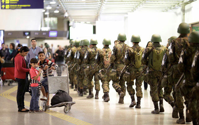 Brazilian Air force soldiers patrol the Tom Jobim International