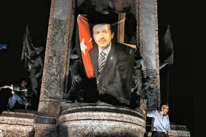 pro-government demonstration on Taksim square in Istanbul, Turkey,