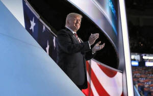 Republican U.S. presidential nominee Donald Trump applauds onstage