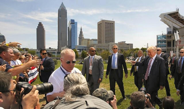 Republican U.S. presidential nominee Donald Trump (R) greets
