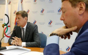 Russian Olympic Committee head Alexander Zhukov (L) and Russian