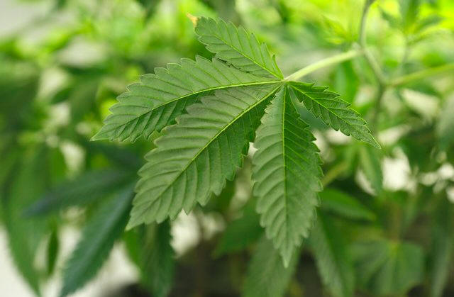 A thriving marijuana plant is seen at a grow operation in