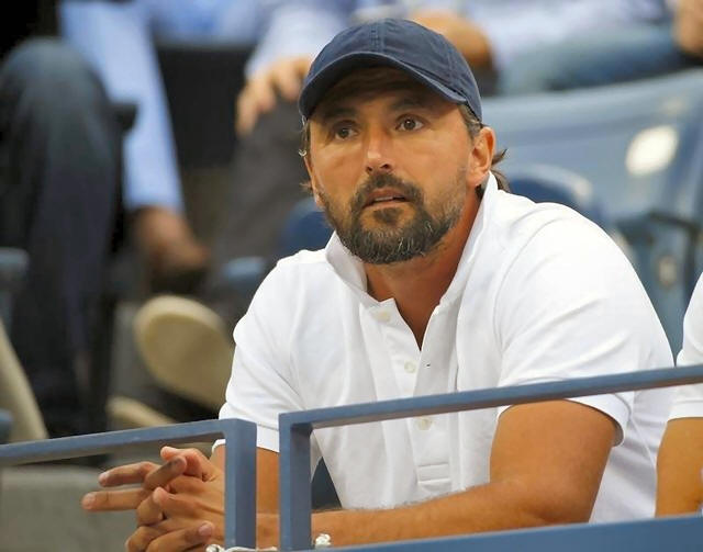 Goran Ivanisevic, coach for Marin Cilic of Croatia, watches as