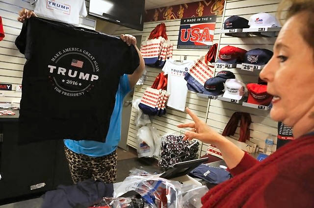 A delegate chooses a Donald Trump campaign t-shirt in a Republican