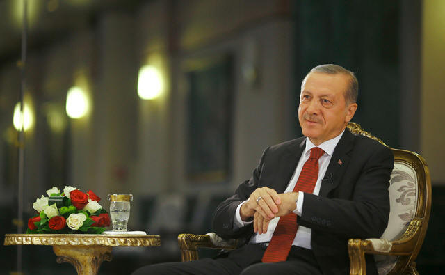 Turkish President Tayyip Erdogan attends an interview with Reuters