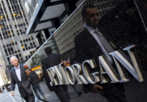 People walk by the JP Morgan & Chase Co. building in New York in an