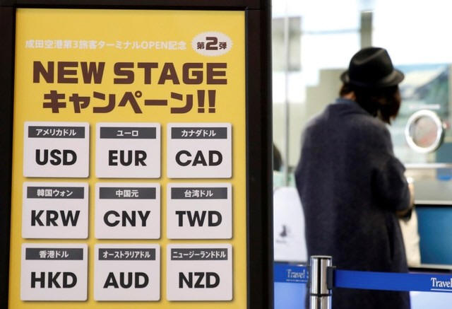 money at Narita International airport, near Tokyo, Japan, March 25,