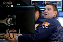 Traders work on the floor of the New York Stock Exchange (NYSE) in