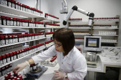 Employees work in a laboratory at Givaudan's facilty which also