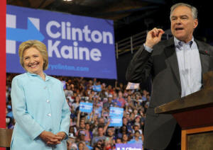 But in a nod to party liberals, the Clinton campaign said Kaine will