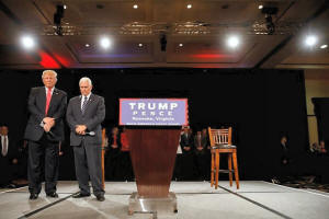 running mate, Indiana Governor Mike Pence, returned to his freewheeling