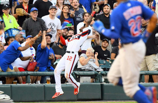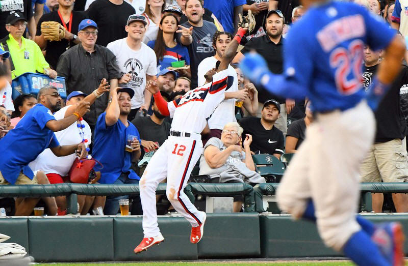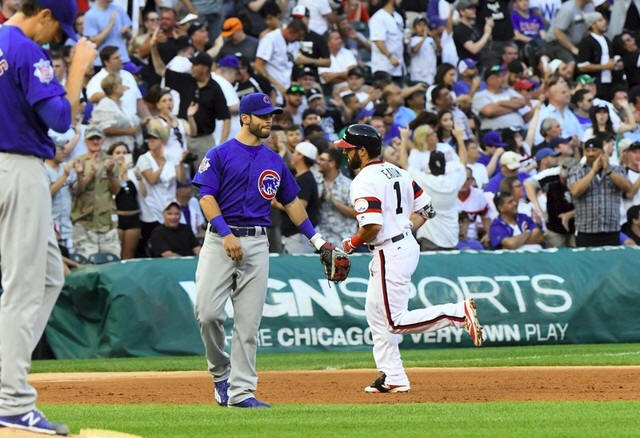 White Sox right fielder Adam Eaton (1) rounds third base after