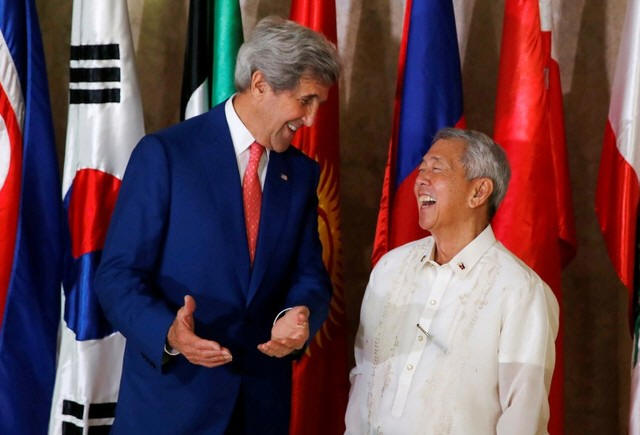 Secretary of State John Kerry (L) meets Philippine Foreign Affairs