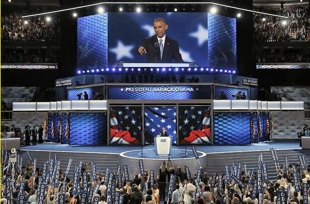 Obama said at the Wells Fargo Center, a basketball and hockey arena.