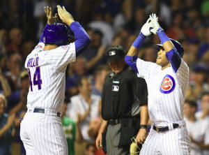 Anthony Rizzo (left) after hitting a grand slam against the Chicago