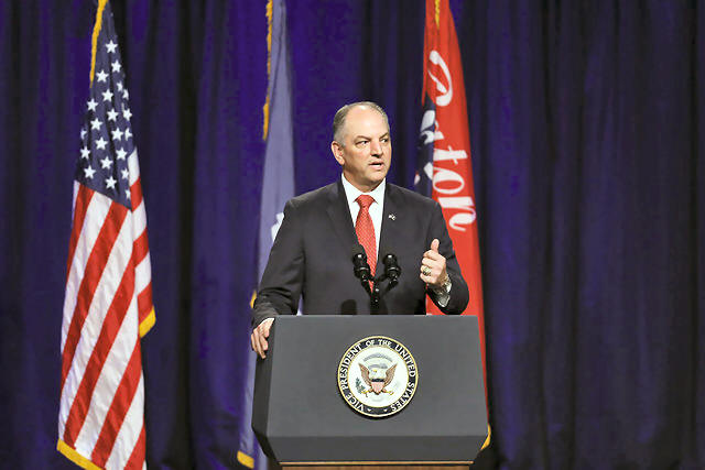 Louisiana Governor John Bel Edwards speaks during a memorial