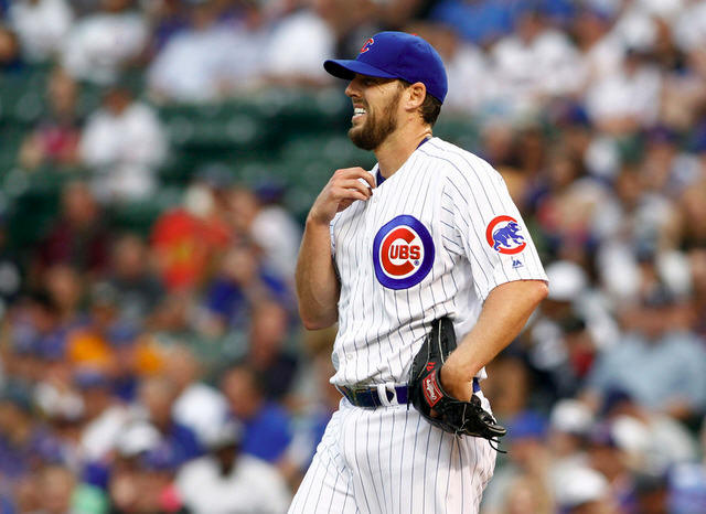 Cubs starting pitcher John Lackey (41) during the first inning
