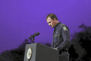 Louisiana State Trooper Col. Mike Edmonson speaks during a memorial